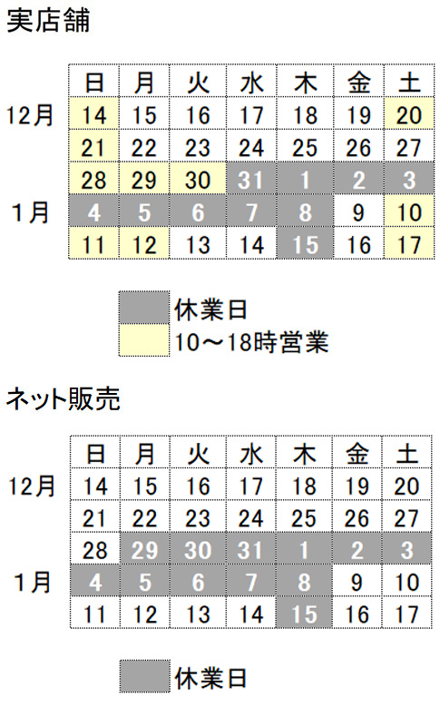 ※休業中にいただいたご注文は2026年 1月9日(金)より順次発送いたします。