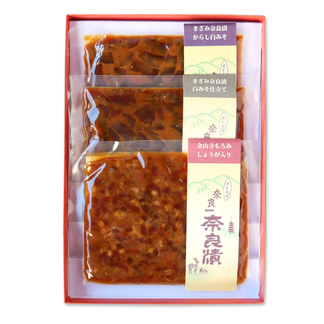 奈良漬 うり1本・きゅうり1本・すいか1個・守口大根半本入 木箱詰